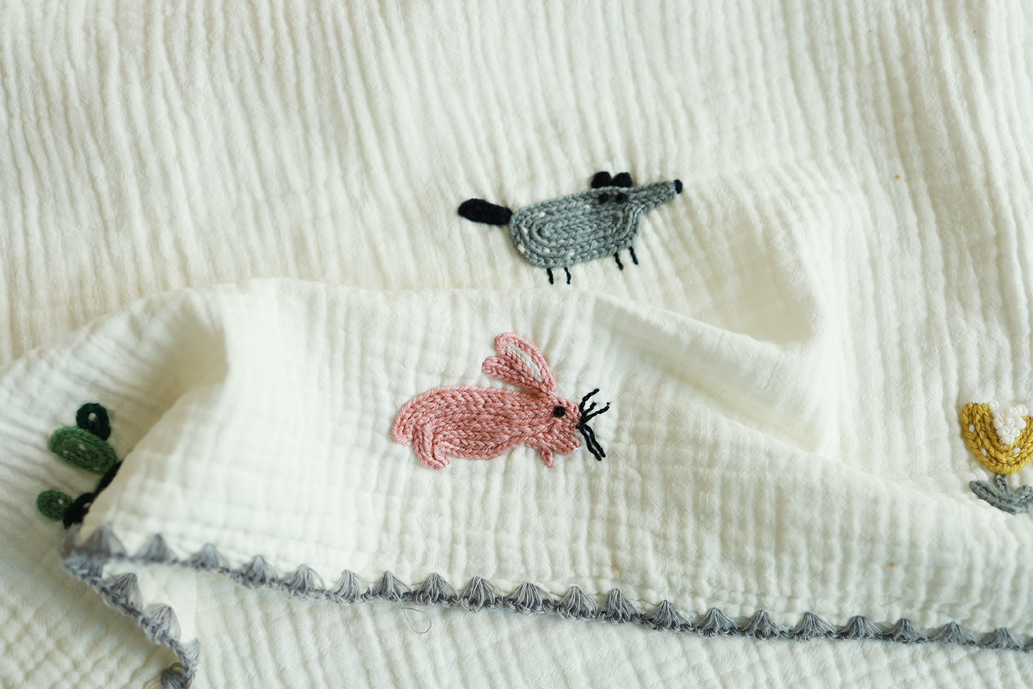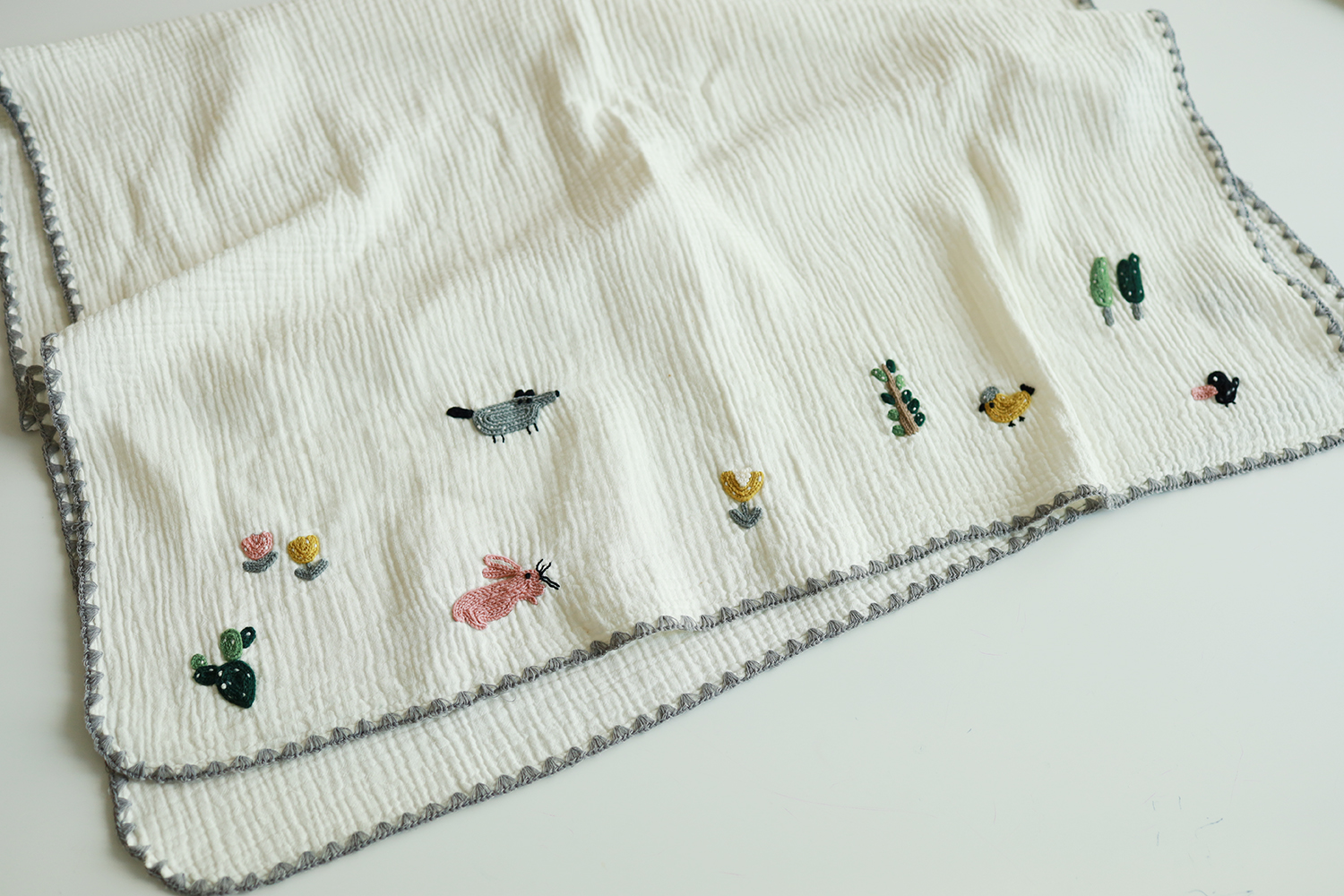 끝단의 자수는 실의 특성상 올 풀림 현상이 있을 수 있으니 사용 시 주의해주세요.